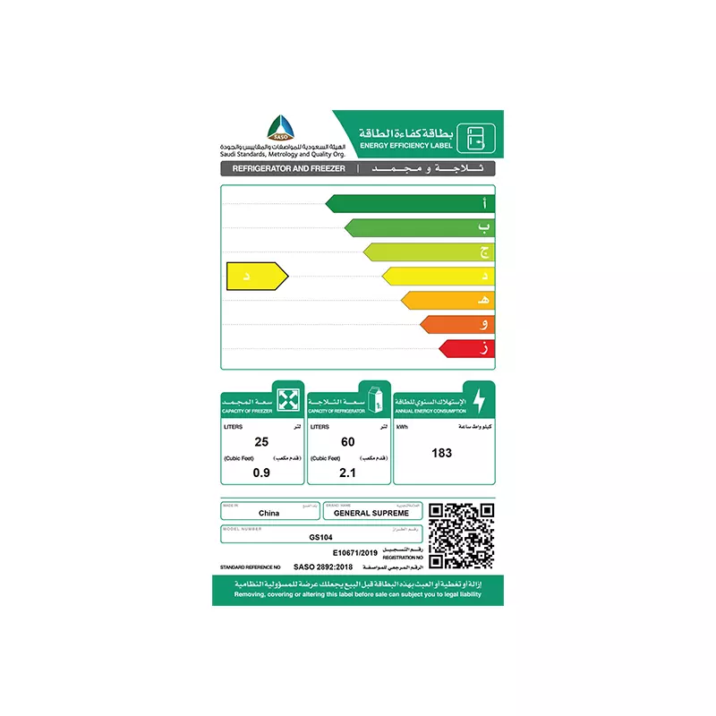 | الصنف | ثلاجة بابين جنرال سوبريم 3 قدم أبيض |